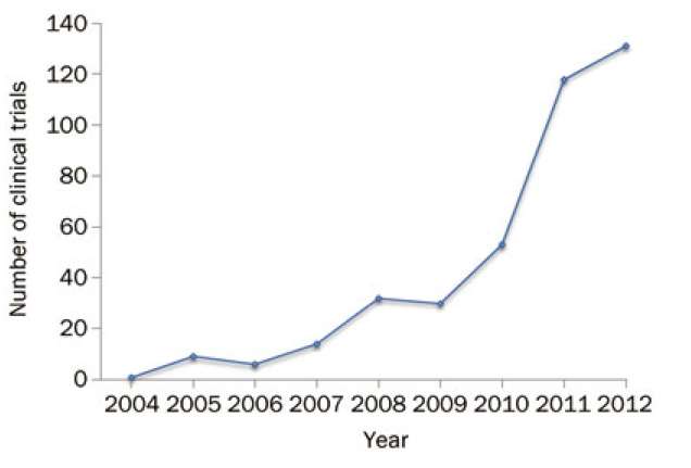 Number of registered clinical trials of mesenchymal stem cells-based therapy on ClinicalTrials.gov.